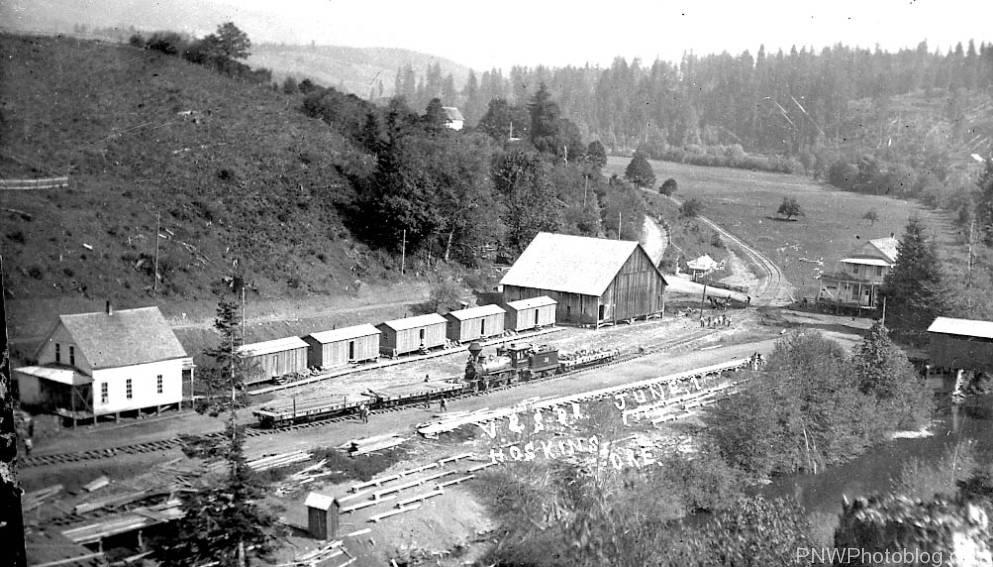 The town thrived for a few decades with the arrival of the Valley & Siletz Railroad, incorporated by Cobbs & Mitchell Lumber Company in 1914. Hoskins would become the railroad’s headquarters where several diesel engines and a couple of self-powered passenger cars were stationed. The 40 mile railroad connected Independence with the logging town of Valsetz and was mostly used to move lumber, although it did business in agriculture and passengers.
