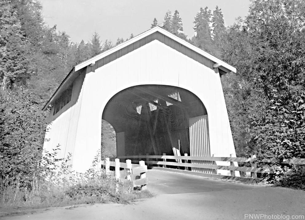 That bridge was replaced in 1938 at a cost of $3815. It served the town for 36 years before the Columbus Day Storm blew several fir trees on to it. The damage was massive, and the bridge had to be replaced. This time by an uncovered concrete bridge that still exists today.