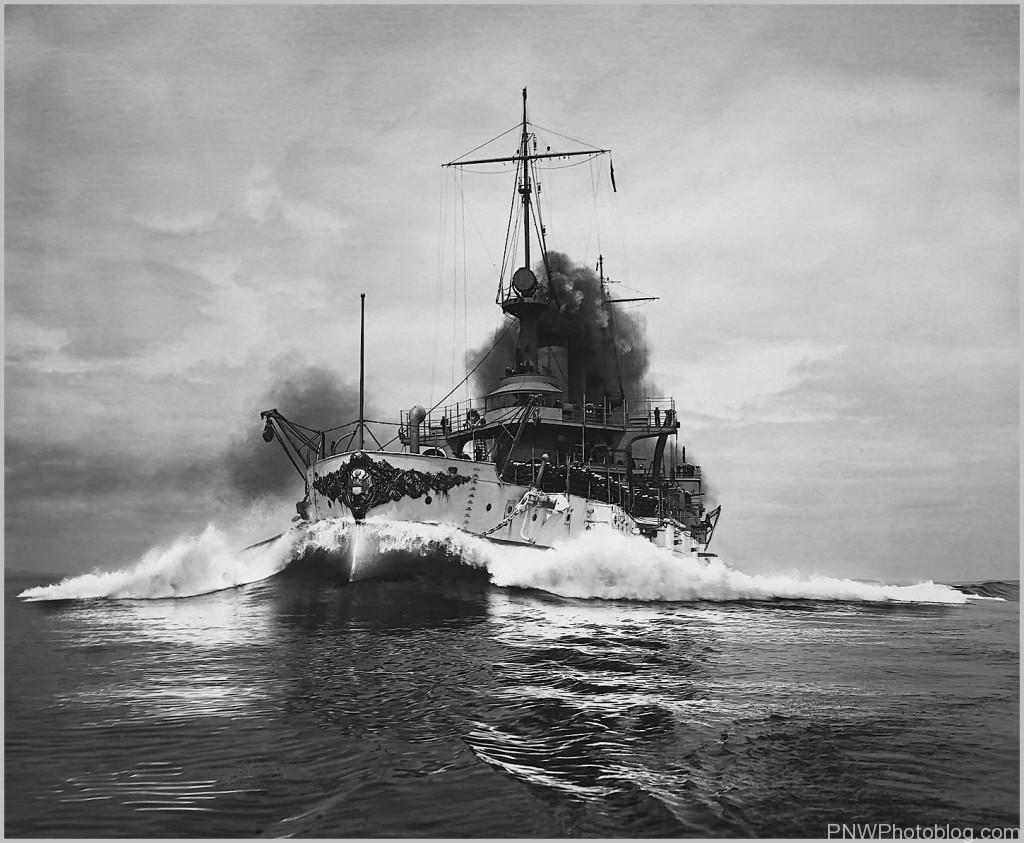In October 1917, the Oregon acted as an escort ship to the transports that took soldiers to Siberia during the Bolshevik Revolution. After the failure of the “Siberian Adventure,” the Oregon returned to the United States where it was out of commission again. This time two thirds of the crew was affected by the 1919 Influenza.